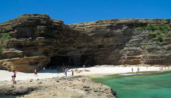 Olhando de cima, a praia Nho é como uma lua crescente, limitada pelas rochas que se projetam do mar. Selvagem e lírica ao mesmo tempo, a combinação de duas características opostas parece rude, mas estranhamente harmoniosa, fazendo com que esse lugar traga uma beleza que raramente é encontrada em outro lugar.